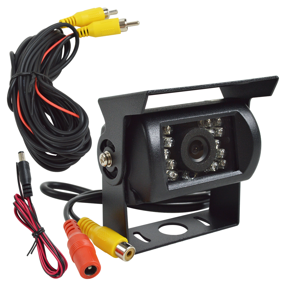 - 12V/24V バック カメラ + 20m 延長 配線 セット RCA端子 リア リヤ カメラ 赤外線 LED 暗視 乗用車 トラック バス 広角 120°