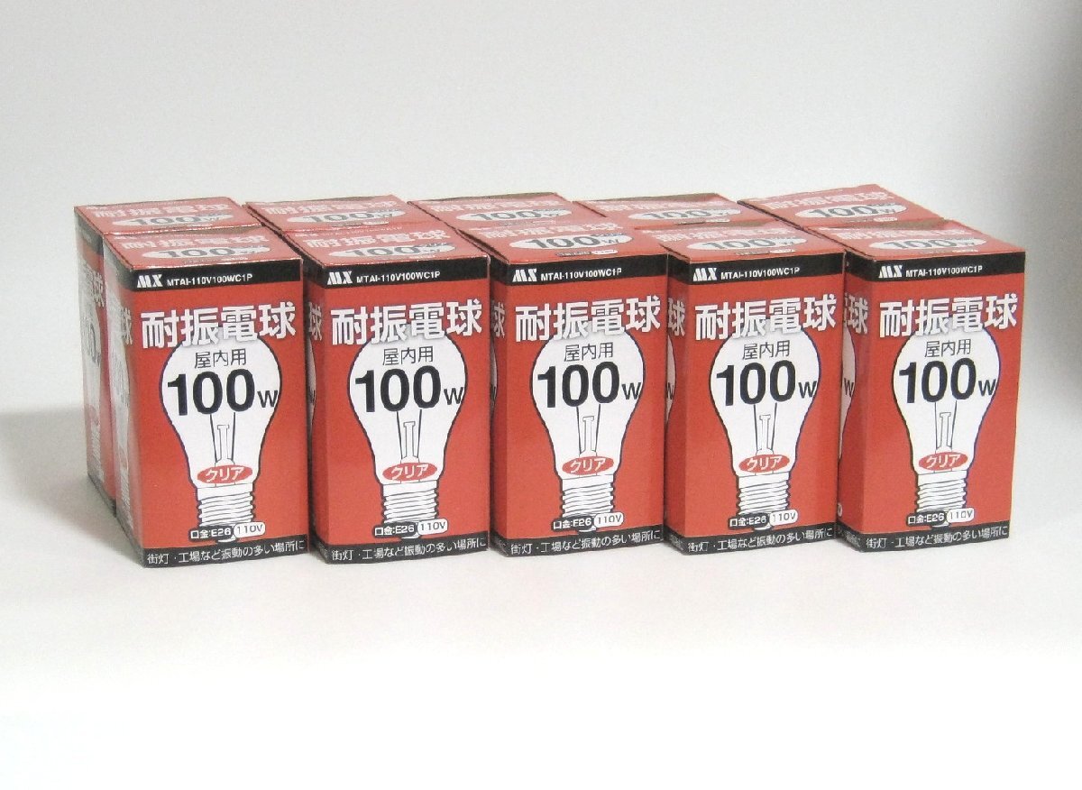 - 自然な明るさ★10個/セット・耐振電球・屋内用100WE26/110V