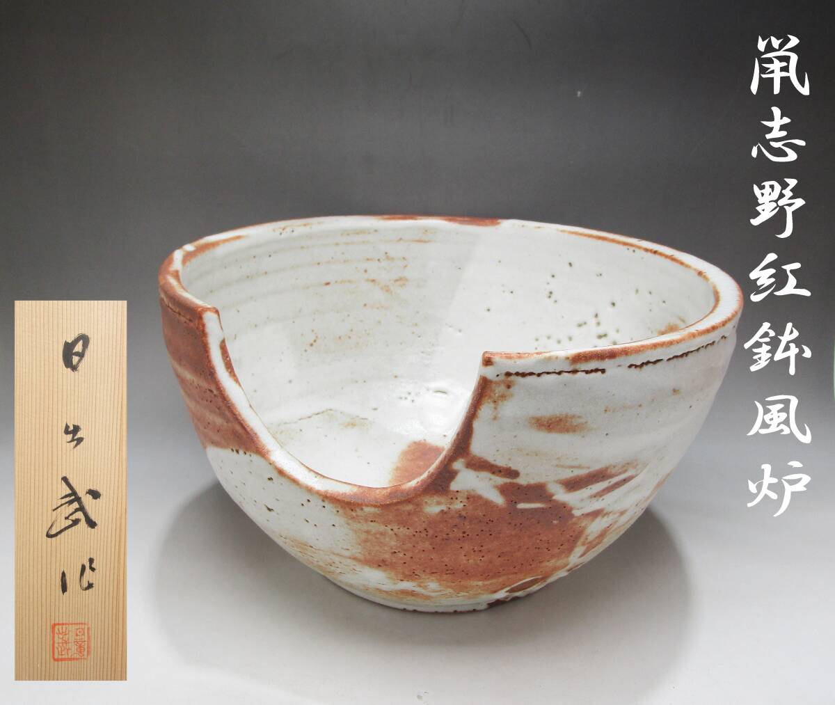 > 《ジャムルK》 KKA0811-51◆安藤日出武 志野 風炉 鼡志野紅鉢風炉 日出武心 重さ5.8kg