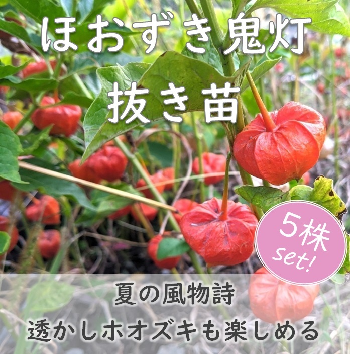 - 夏の風物詩◆ほおずき鬼灯の抜き苗5本 透かしホオズキやランプも素敵◆ドライフラワー 耐寒性宿根草 ガーデニング 苗木 庭木 園芸