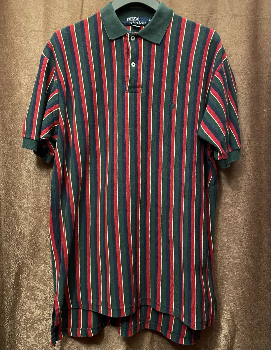 - 希少 MADE IN USA製 Polo by Ralph Lauren ストライプ柄 半袖 鹿の子ポロシャツ マルチカラー Lサイズ ポロ ラルフローレン アメリカ製