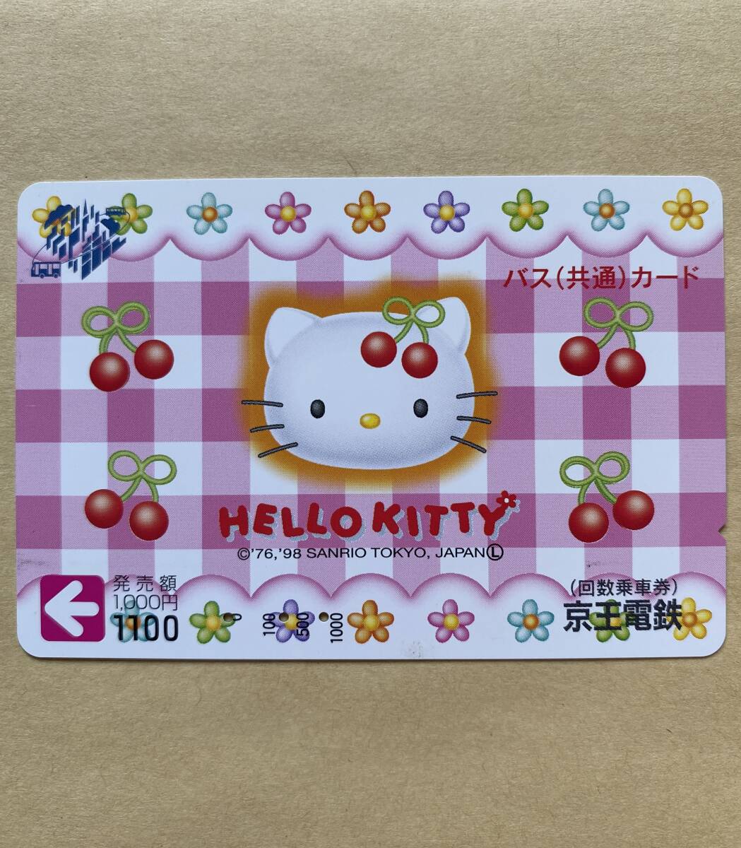 - 【使用済】 バスカード 京王電鉄 ハローキティ さくらんぼ チェック柄 お花フリル サンリオ