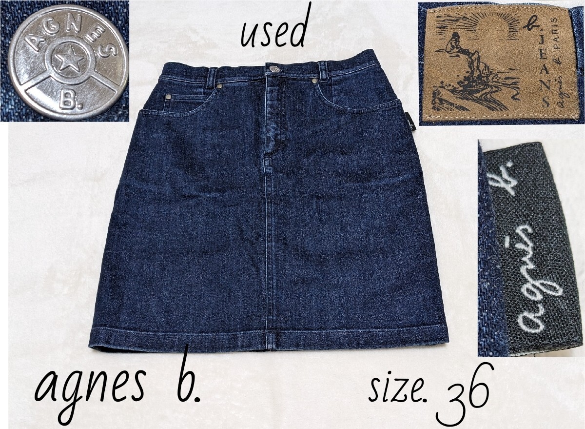 - agnes b. デニムスカート36 ストレッチ生地 アニエスベー ミニスカート ロゴタグ ロゴ入りボタン 牛革タグ ボトムスS レディース ジーンズ