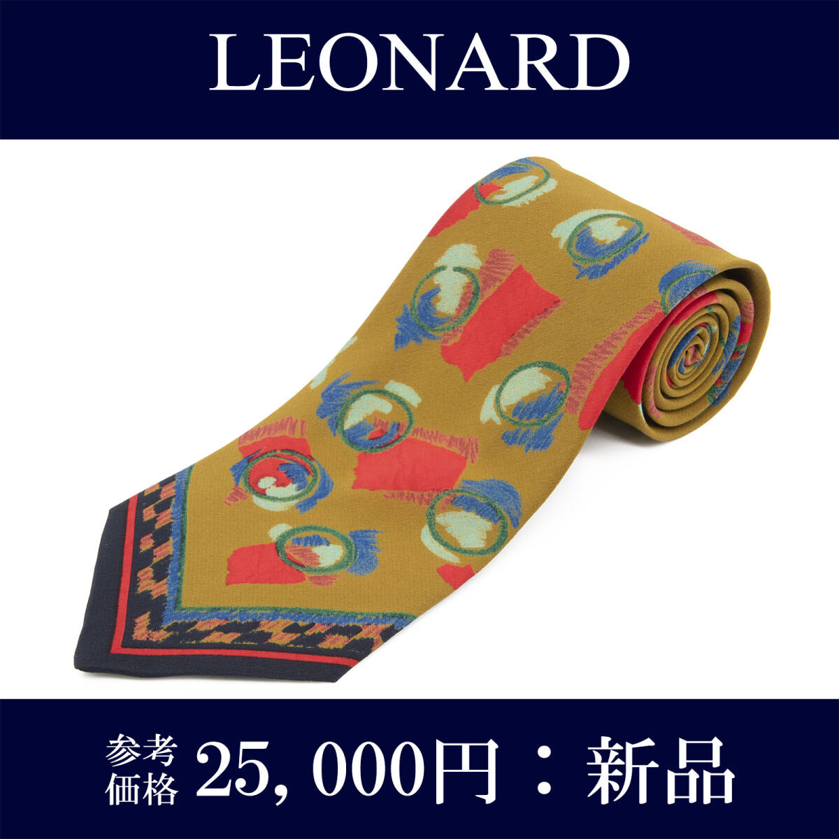 - 送料無料 レオナール ネクタイ レギュラータイ プリントタイ 新品 シルク 黄土色 赤 レッド 青 ブルー 水色 黒 ブランド イタリア製 N777