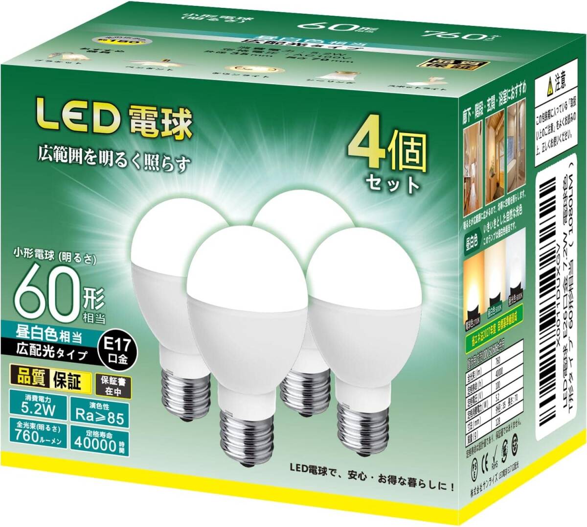 > ミニクリプトン型 LED電球 E17口金 60W形相当 760lm 昼白色 (5.2W) 小形電球 「ネック部 : スリムタイプ」 4個セット