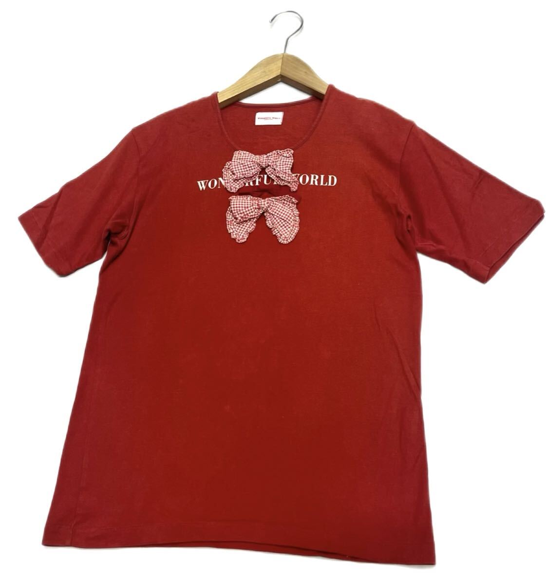 > WONDERFUL WORLD KANEKO ISAO★カネコイサオ★胸トリプルリボン 綿100% 半袖 Tシャツ カットソー/赤