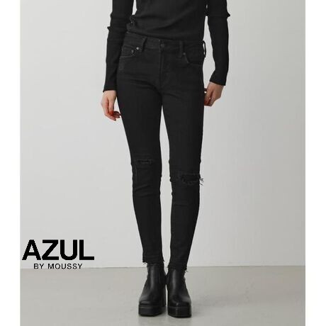 - 【美脚】AZUL BY MOUSSY アズールバイマウジー|REPAIR DENIM SKINNY2 ブラックスキニーデニムパンツ/M