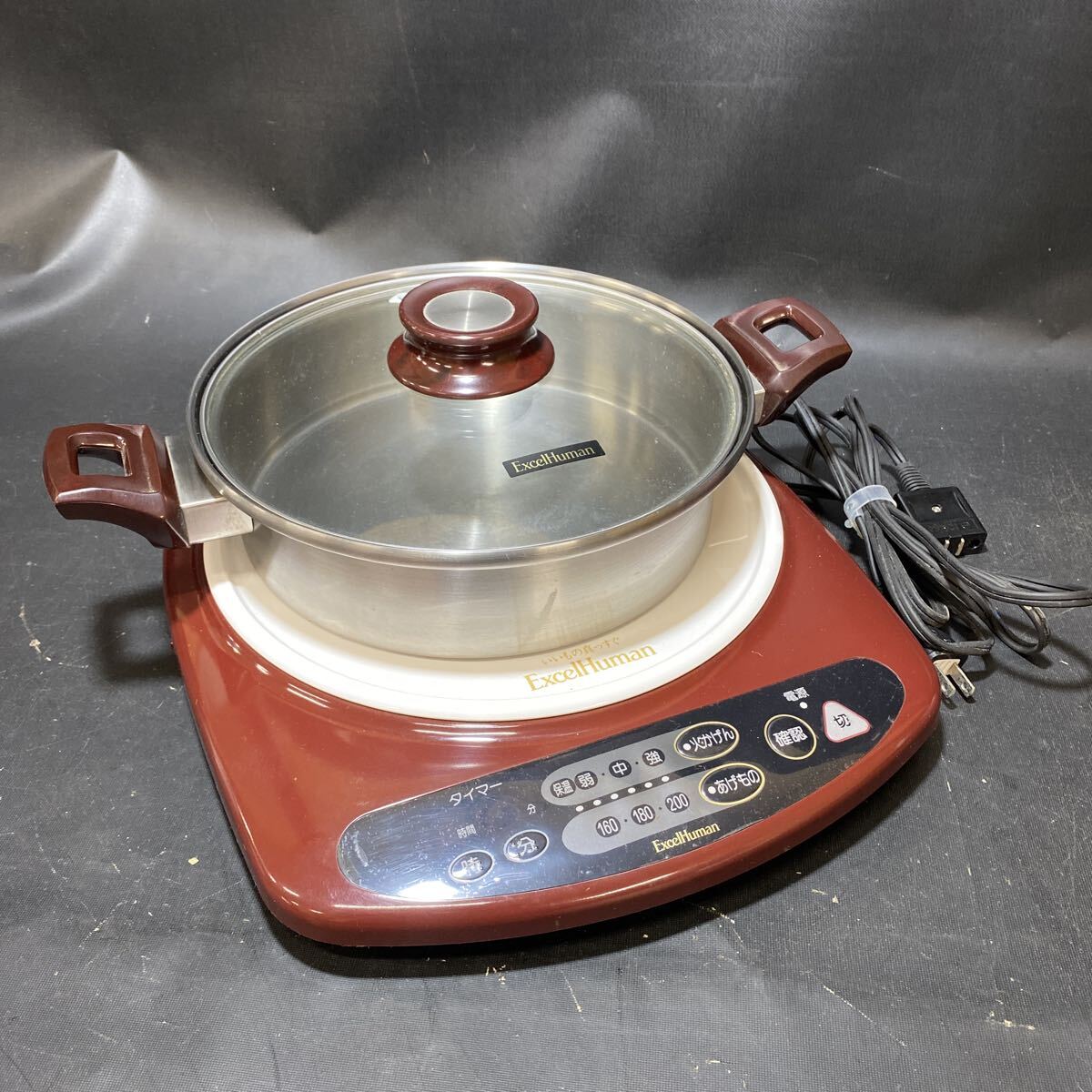 > N 6397 美品[ エクセルヒューマン IHコンロ EXL-IH-V ステンレス鍋付 ] 三洋電機製 浅型鍋 両手鍋 クッキングヒーター 動作確認済 保管品