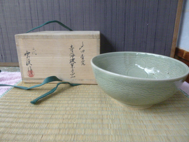 - 多田青瓷青海波菓子器・田村雲渓(二代)・共箱