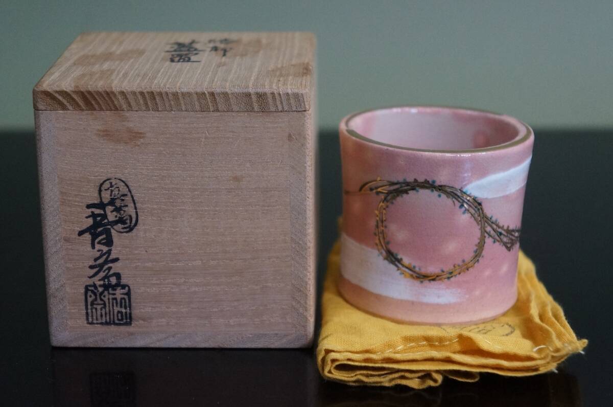 - ■ 蓋置(結柳画)「真葛香斎」(共箱共布)★ 蓋置 茶道具