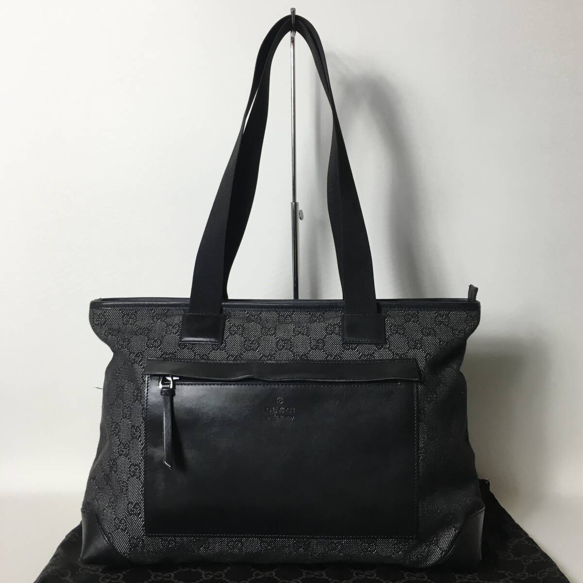 - 77B245|美品|グッチ GGキャンバス トートバッグ ブラック