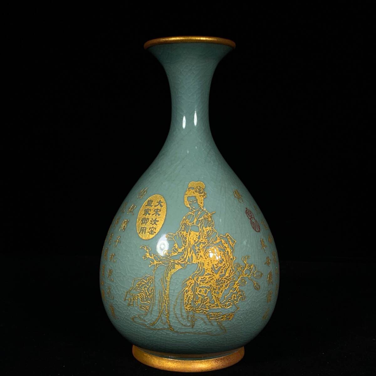 - 蔵友旧蔵出 宋 汝窯 包口 銘文 仕女紋 玉壺春瓶 稀少珍品 貴重品 古陶瓷品 置物 古賞物 中国古玩 中国古美術品