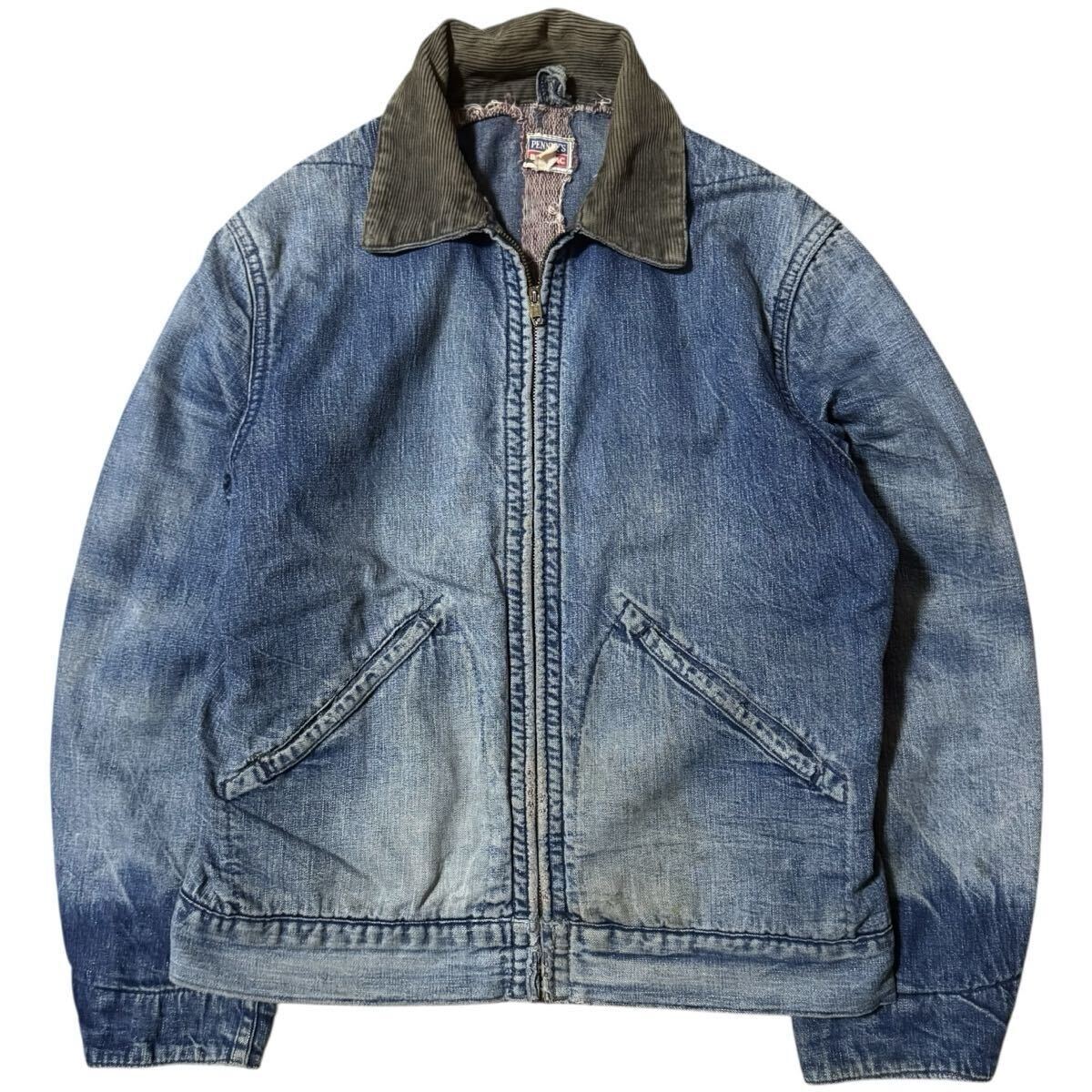 - 雰囲気系 BIG MAC PENNY'S 襤褸 50sビンテージ 短丈 デニムブルゾン 襟コーズ ブランケットライナー グランジ boro ボロ CONMARジッパー