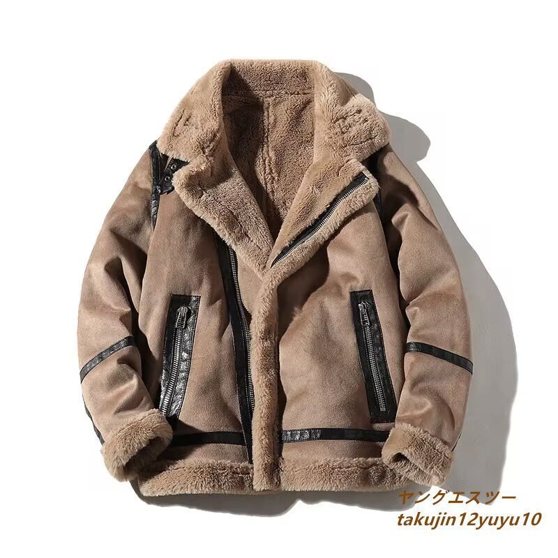 - 入手困難◆定価13万 ムートンコート 最高級 ブルゾン 天然革 毛皮 ファーコート ライトジャケット 配色 シープスキン ラムレザー 厚手 M