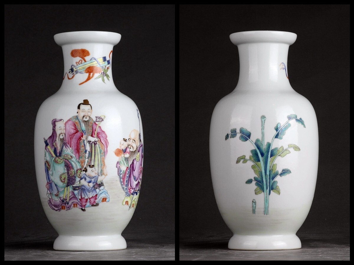 - 「清代 陶磁器 粉彩福祿壽 三星瓶」染付 置物 擺件 古賞物 中国古美術 旧蔵出