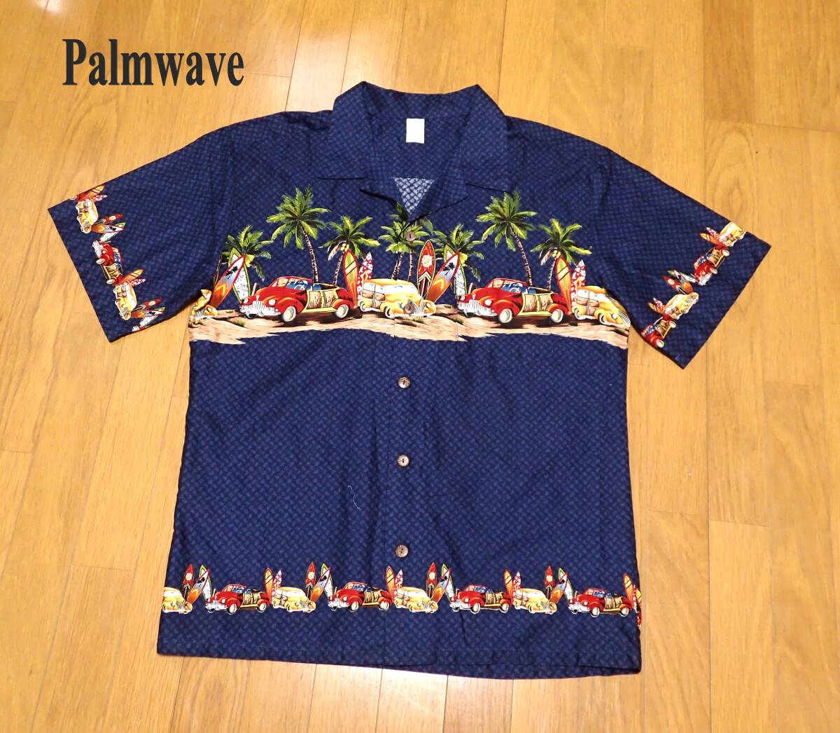 - ☆Palmwave HAWAII ☆ヴィンテージデザイン ☆クラシックカー ☆アロハシャツ ☆ココナッツボタン ☆ネイビー ☆メンズ ☆L
