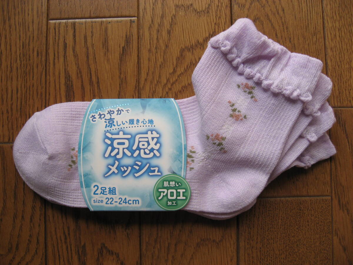 - レディース靴下 涼感メッシュ 肌想いアロエ加工 2足組