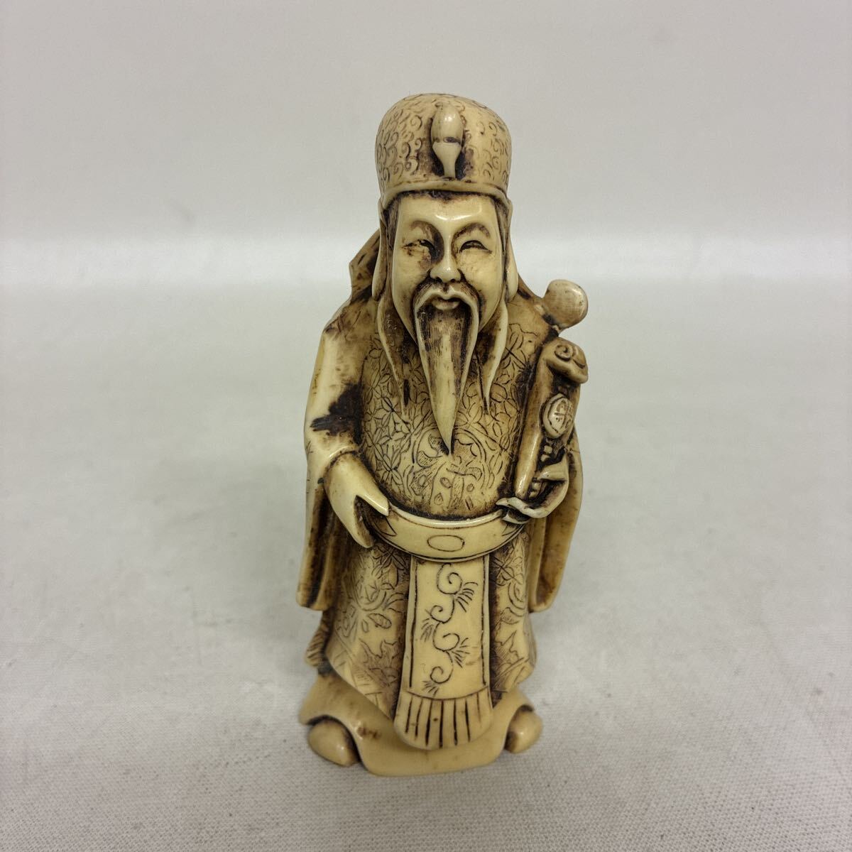 - 中国美術 七福神 福禄寿 縁起物 根付 骨董 天然白素材 アイボリー