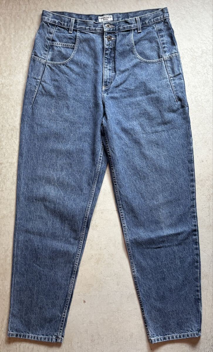 > 【USA製】90s GUESS ゲス デニム パンツ バギージーンズ メンズ W34 インディゴ 色落ち アメリカ製 テーパード コットン vintage 正規品