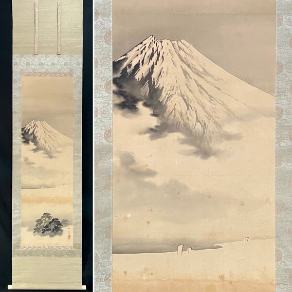 - H14M08[真作]岸浪柳渓「富士田子浦景図」掛軸 絹本 山水図 肉筆/南宋画の大家 田崎草雲師事 合箱