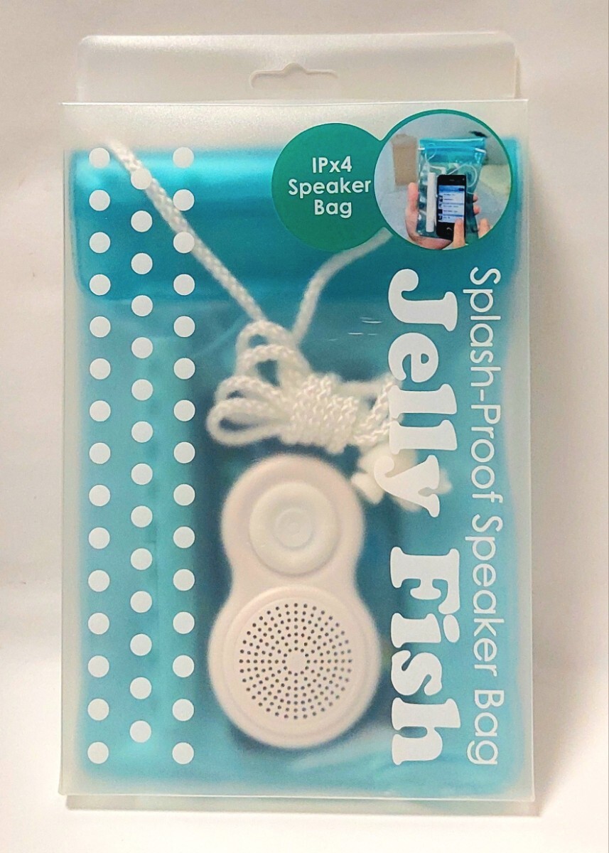 > ☆未使用!お風呂で!海で!雪山で!動画、音楽が楽しめる!「アンプ内蔵 防滴 スピーカーバッグ Jelly Fish」スマートフォン用 防水ケース