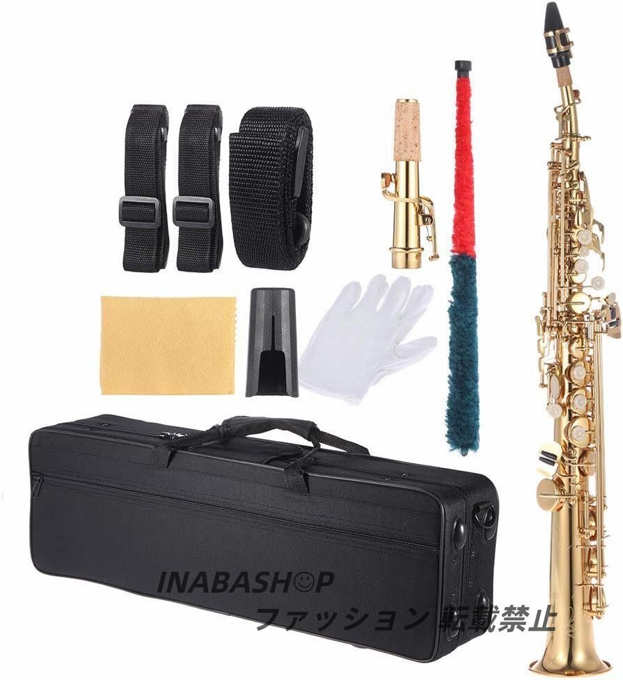 - 真鍮直管ソプラノサックスBb B平面木管楽器自然筐体鍵彫刻パターンキャリーケース付き手袋クリーニングテープクリーニングバー