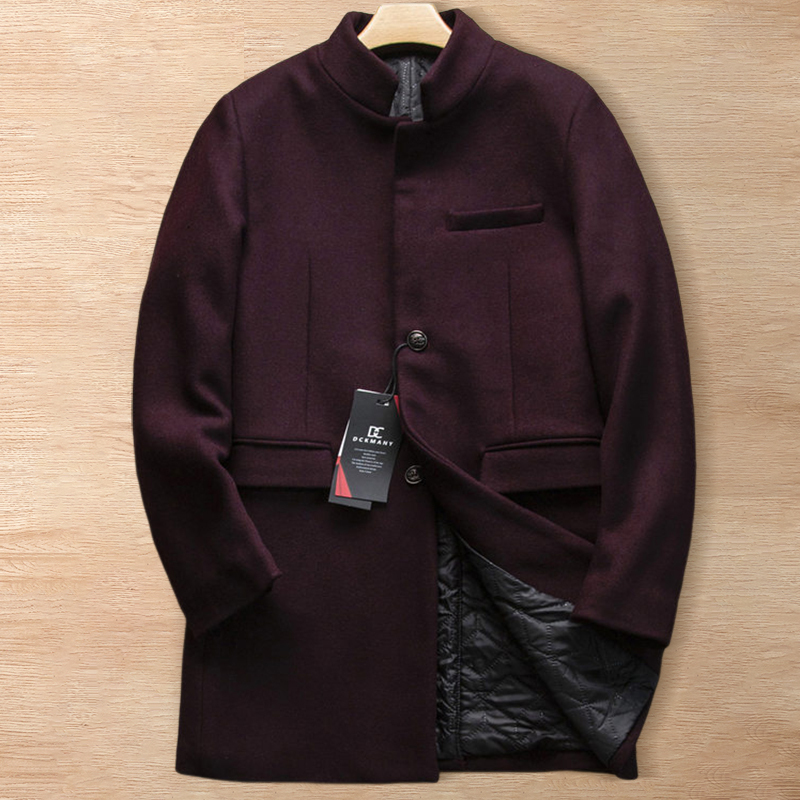 > Y670-L程度 ワインレッド 新品DCKMANY ウール混 チェスターコート メンズ 立ち襟 ジャケット 中綿 ミドル ルーズ ビジネス 秋冬 アウター