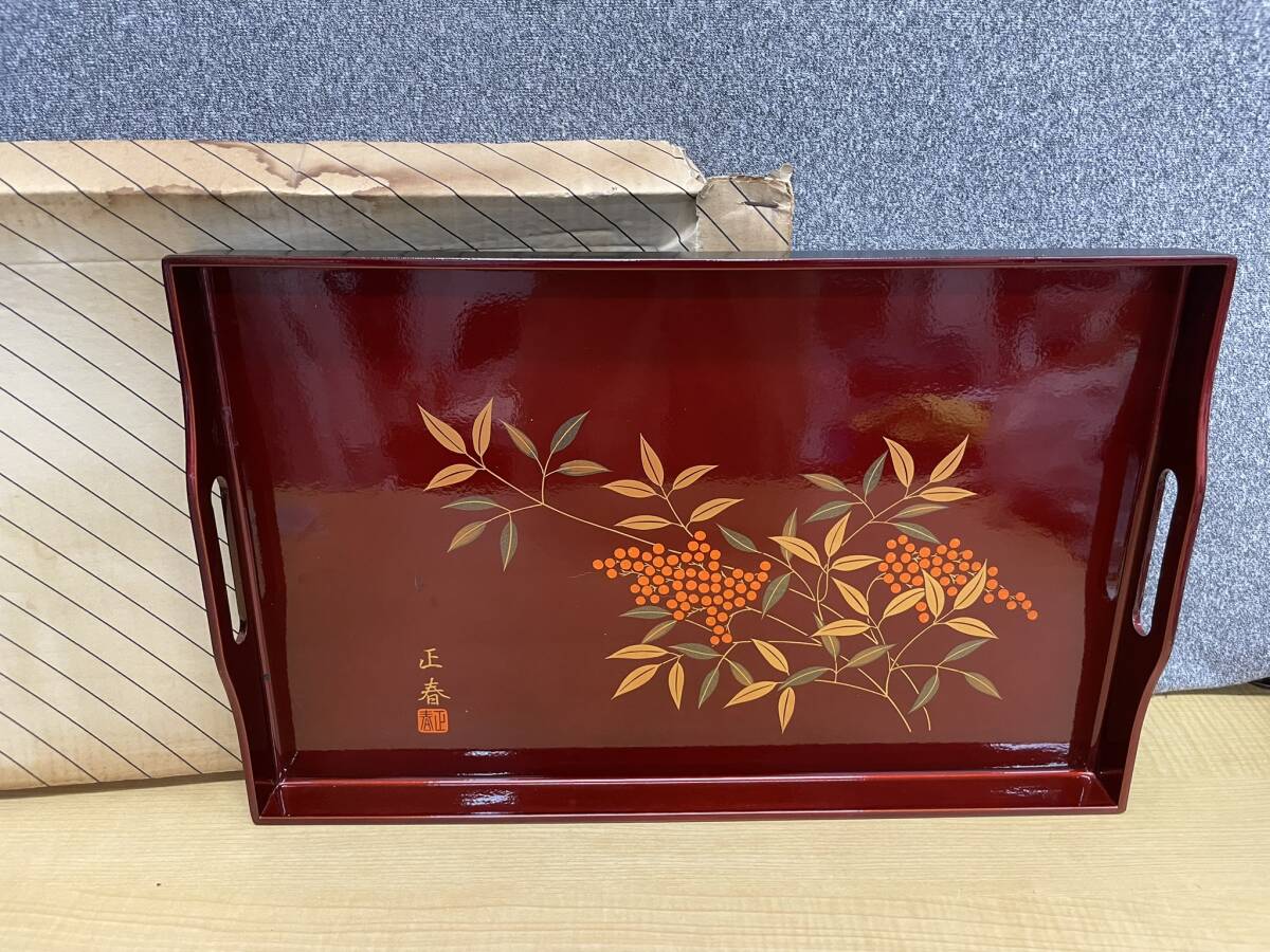 - 未使用★正春作 長手盆★角盆お盆★漆塗り★X25225