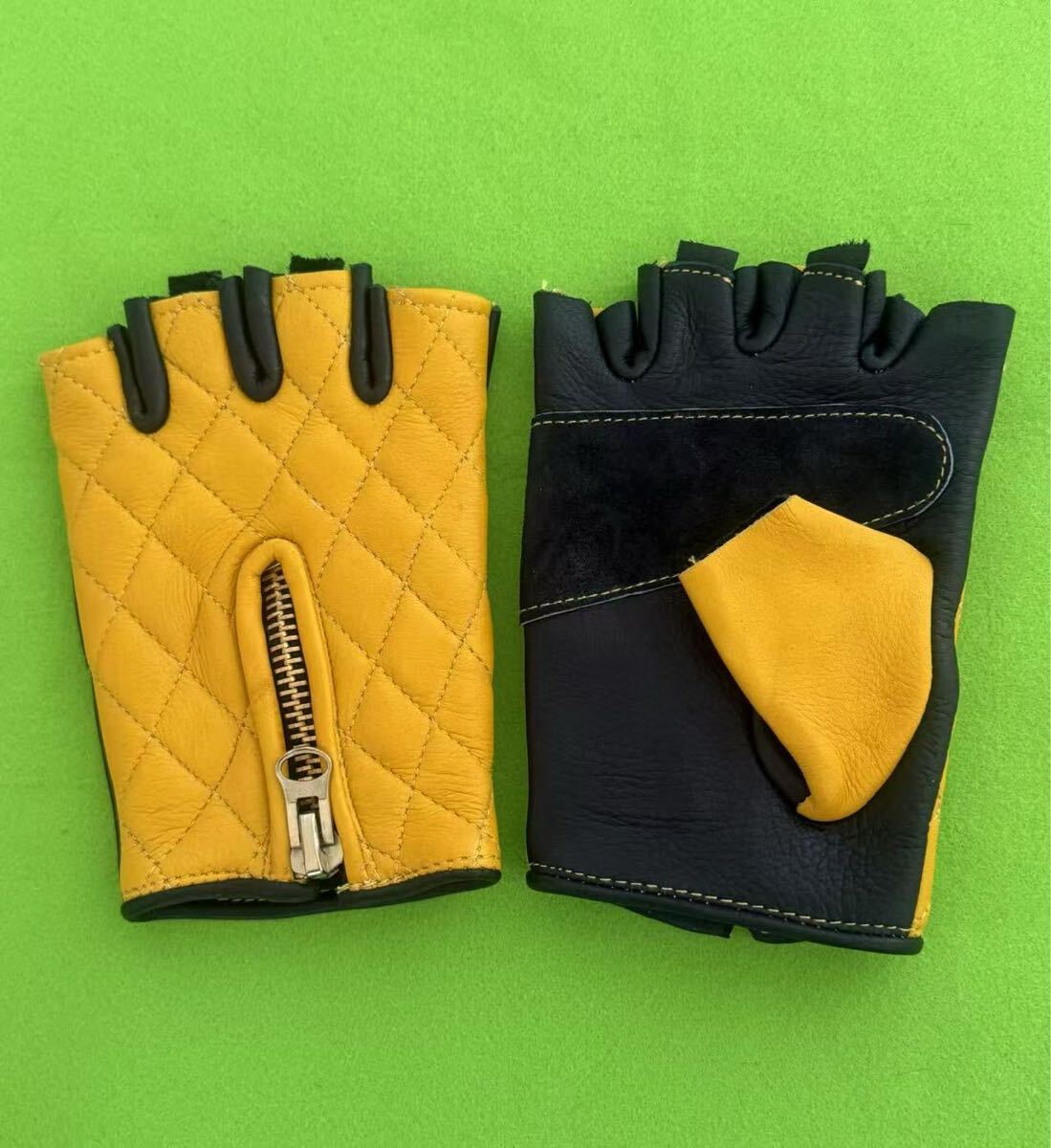 - 本革グローブ ハーレーバイクグローブ 半指レーザーグローブショート通気 春夏用
