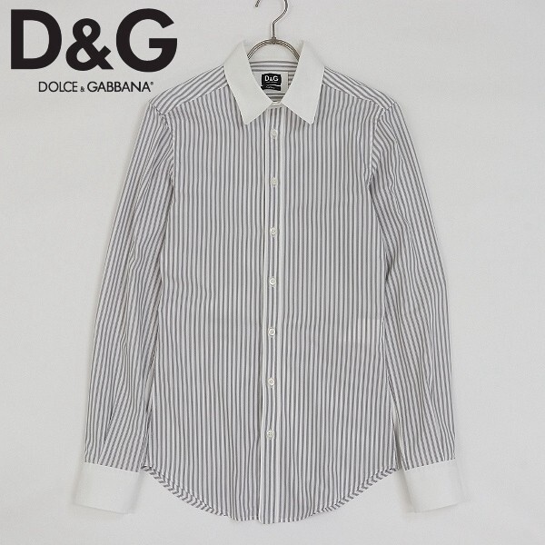 - 【FA618】◆D&G ドルチェ&ガッバーナ SLIM ストライプ柄 クレリックカラー 長袖 シャツ グレー×ホワイト 44