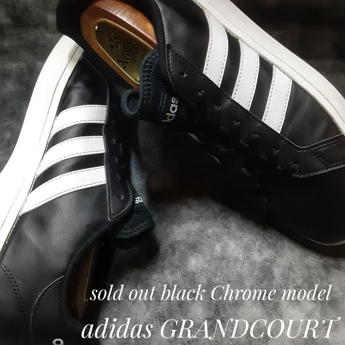 - 最値!定8470円!完成型復刻!リバイバルデザイン!アディダス グランドコート高級シンセレザー スニーカー!完売ブラッククローム!黒白 26cm
