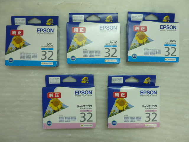 - r207B新品未開封 EPSON エプソン 純正インクカートリッジ ICLM32 ICC32 ライトマゼンタ シアン 5点セット ひまわり プリンタインク