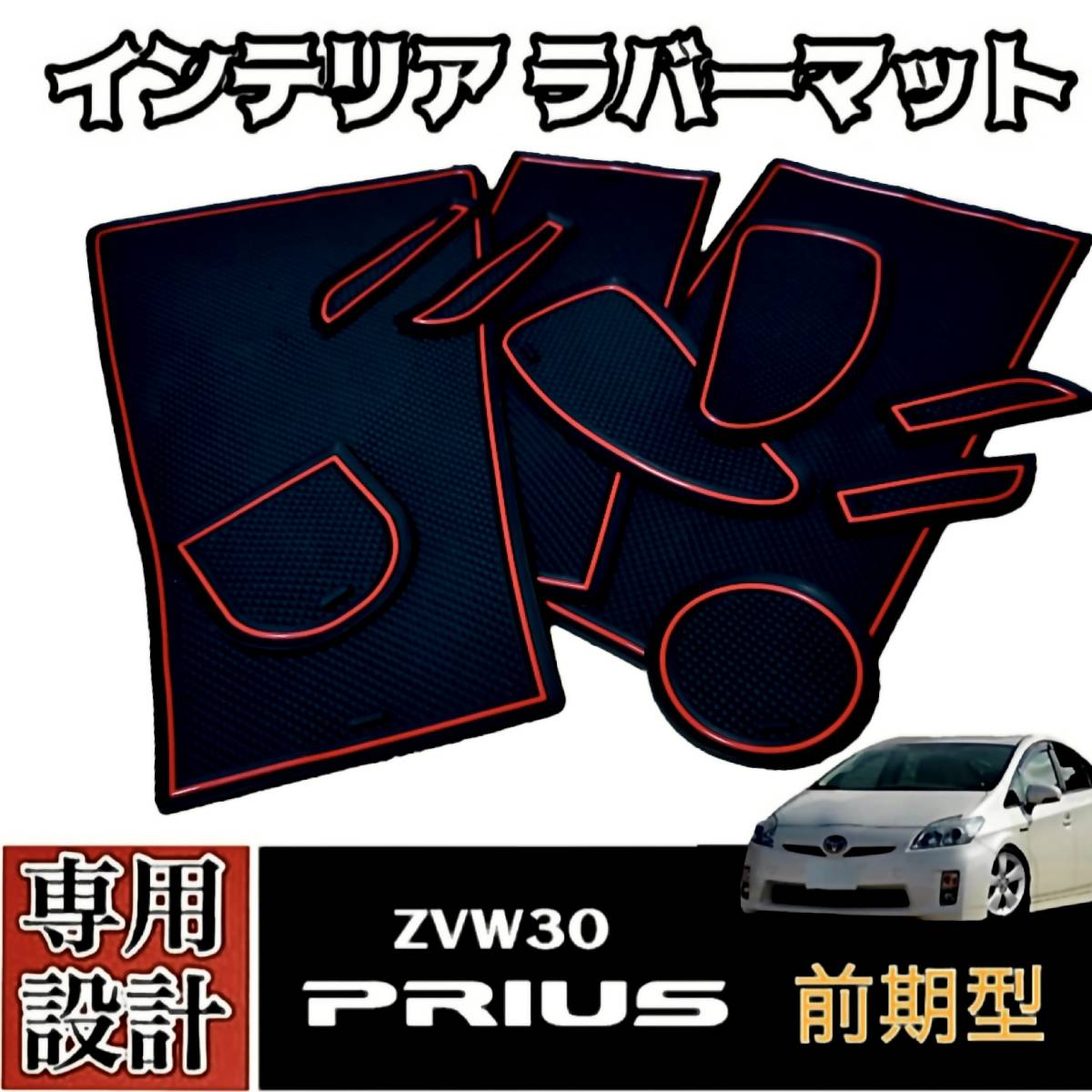 - 30プリウス 前期 専用設計 インテリア ラバーマット コンソール ドアポケットマット 送料無料 赤ライン