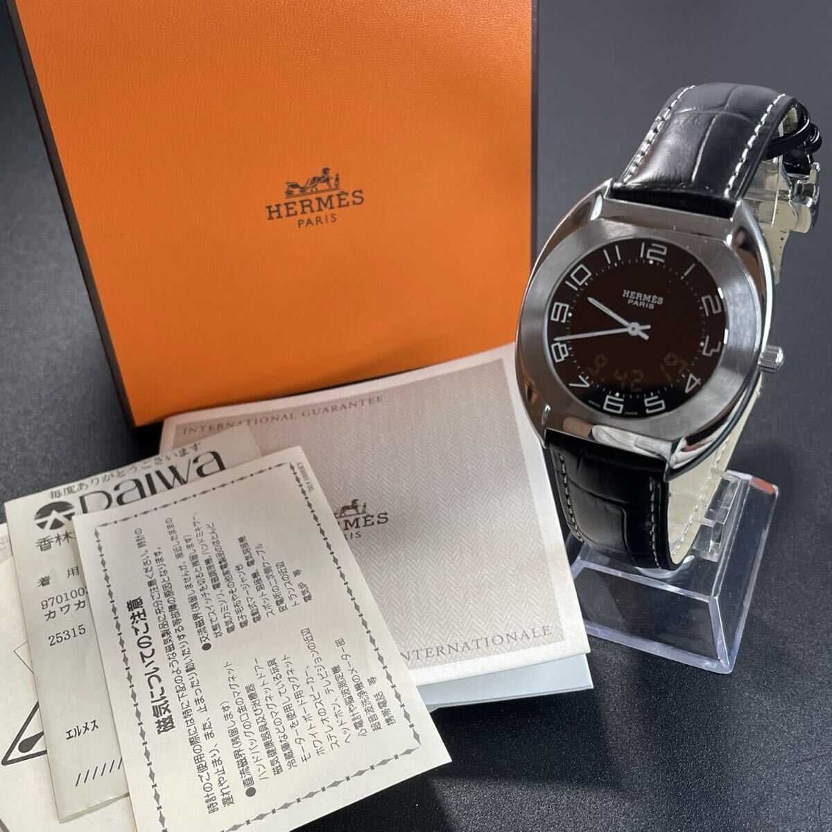 > 【可動品 正規品】エルメス メンズ 腕時計 エスパス デジアナ QZ 希少モデル デジタル アナログ HERMES ブラック 【2508He5】
