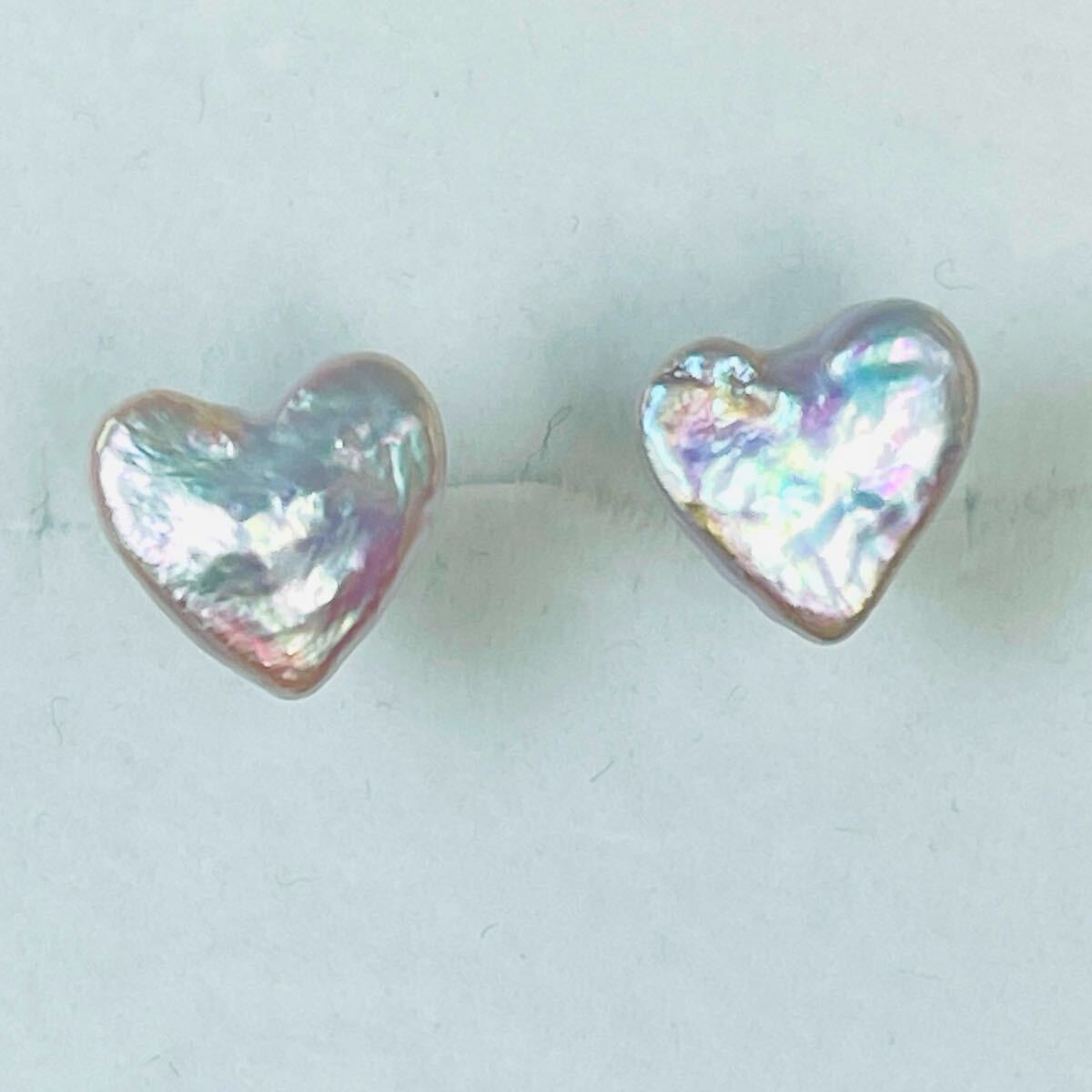 - 絶品照り 本真珠ピアス バロックパール ハート 天然虹色 異形パール 無調色 10-11mm 照り艶抜群 直結ピアス 絶品カラー jewelry pearl