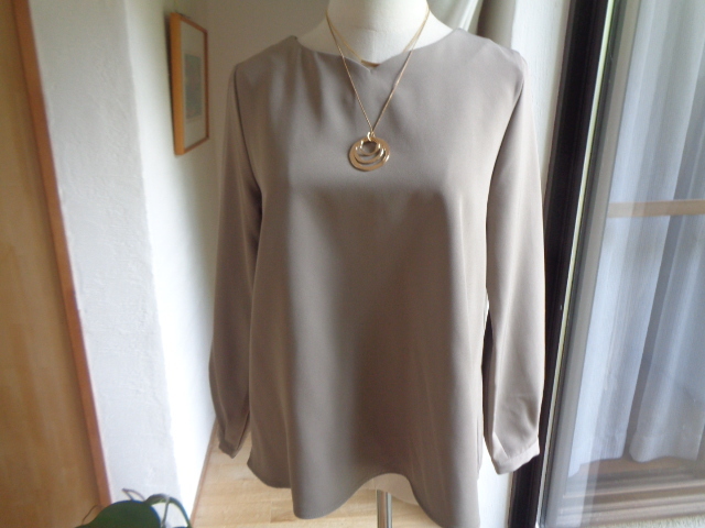 - CLACIER ネックラインお洒落♪ 秋色 長袖ブラウス グレージュ系 微光沢☆ S 美品♪