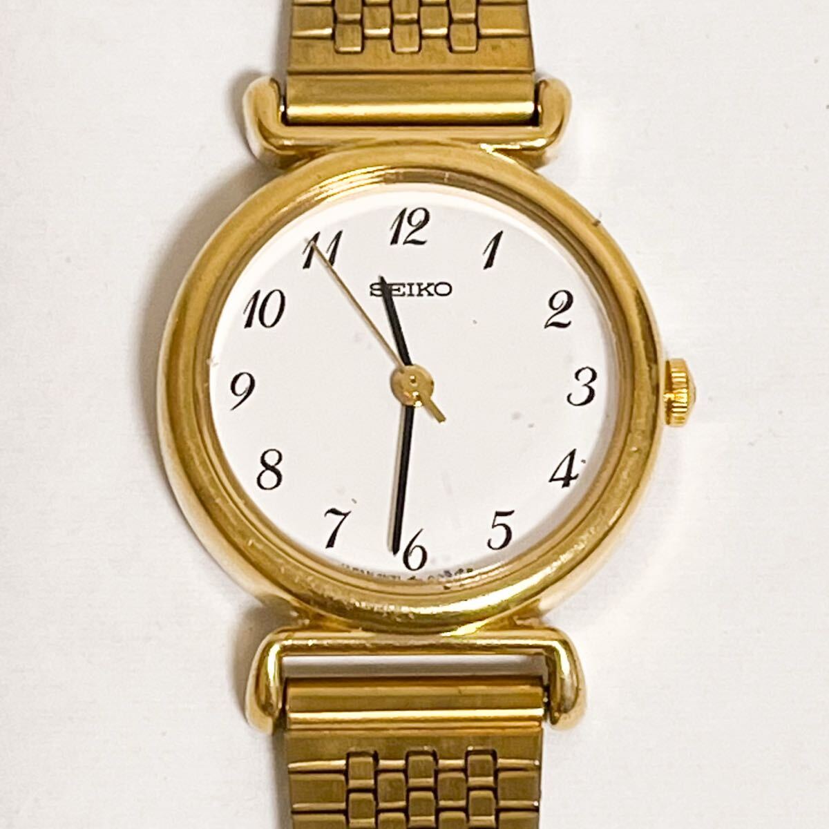 - 和822★ SEIKO 4N21-0052 510473 セイコー クォーツ 腕時計 ウォッチ 3針 ホワイト ゴールド メタルバンド レディース