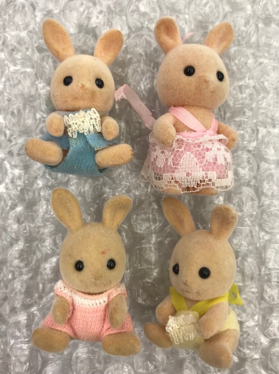 ※当時物現状品 シルバニアファミリー アイボリーウサギの赤ちゃん 耳折れ 4体 うさぎ フィギュア グッズ SF75