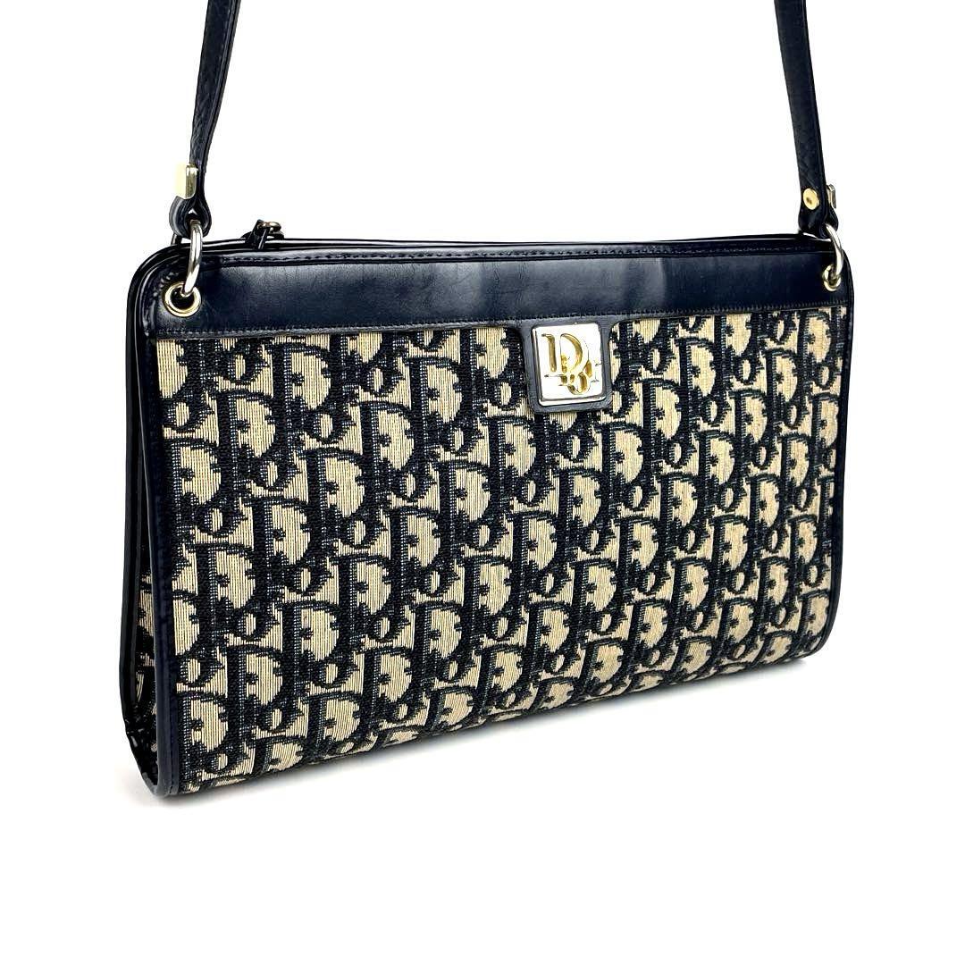 > 美品■ Christian Dior ディオール ショルダーバッグ トロッター 総柄 CD金具 肩掛け レザー キャンバス 黒 ブラック ベージュ フォーマル
