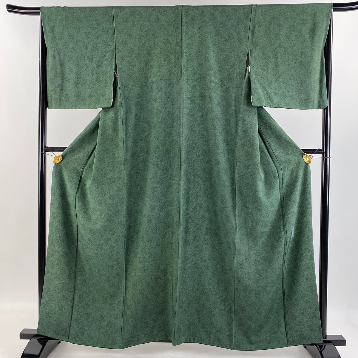 - 江戸小紋 身丈159cm 裄丈66cm M 袷 人間国宝 中村勇二郎 落款 雲中供養菩薩 緑 正絹 逸品 【中古】