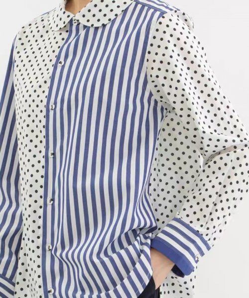 > ns 2508 ワイシャツ チュニック トップス フリーサイズ ゆったり 縫い合わせ 綿100% コットン4