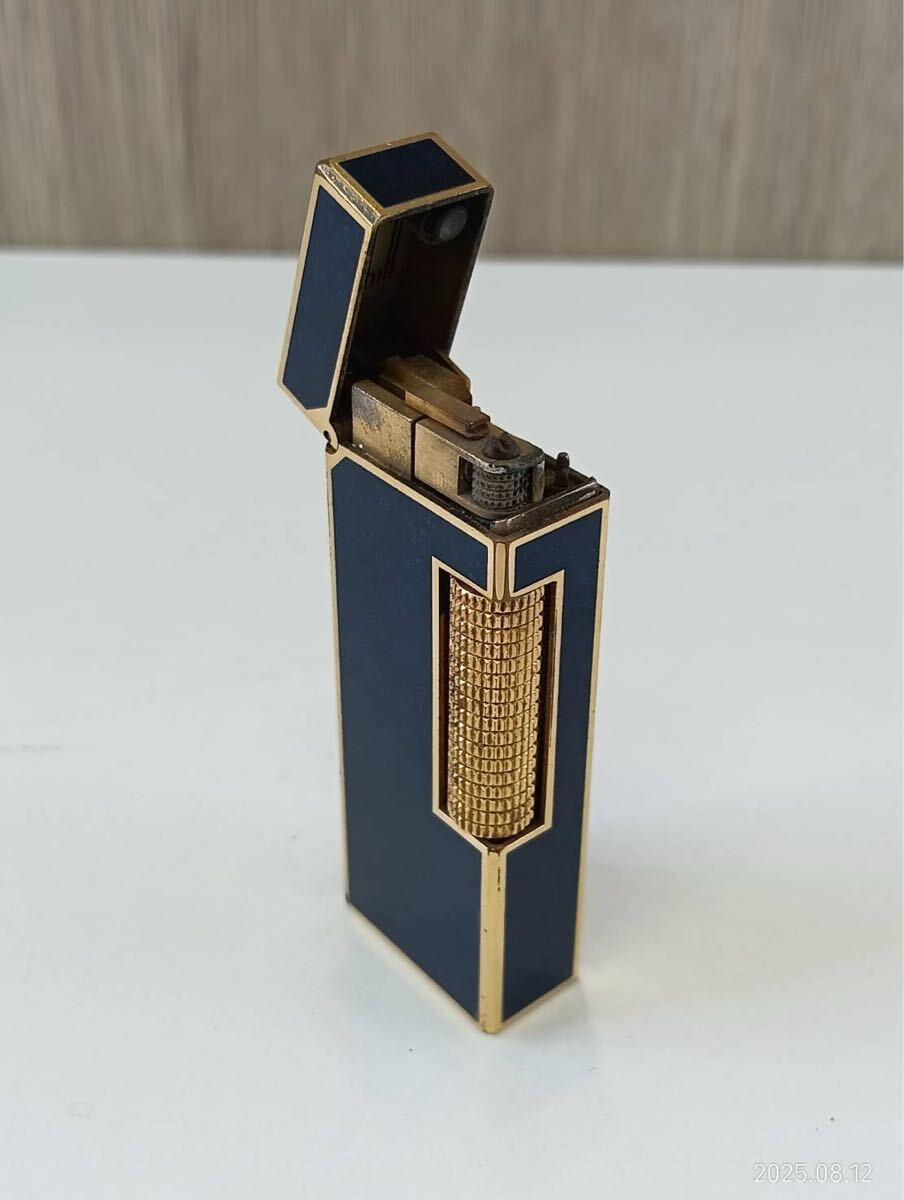 - 【中古品】 dunhill ダンヒル ガスライター ローラー式 ゴールド 金 ネイビー 紺 喫煙具 現状品