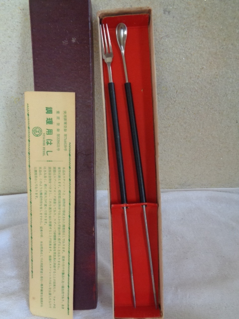 - 調理用はし/ステンレス製 スプーン&フォーク付き 調理箸・料理箸・菜箸/実用新案・意匠登録/箱入未使用品-長期保管品