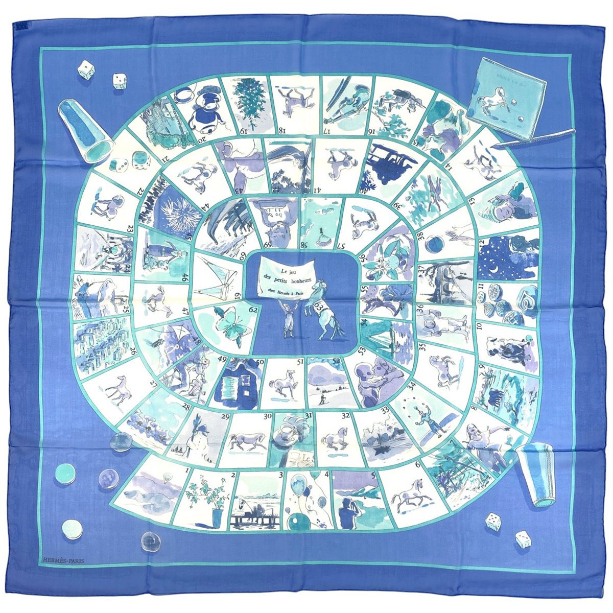 > エルメス HERMES カレ90 Le jeu des petits bonheurs 小さな幸せのゲーム シースルー スカーフ スカーフ シルク ブルー マルチカラー 中古