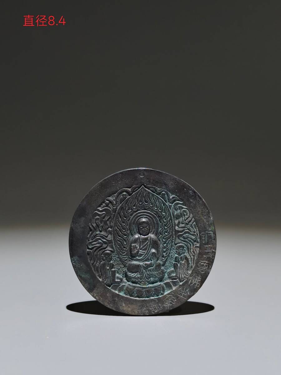 - 蔵友旧蔵出 明 青銅作 三佛坐像 小手鏡 希少珍品 貴重品 置物 古賞物 中国古玩 中国古美術品 館蔵品