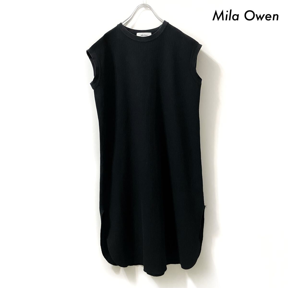 - 【送料無料】Mila Owen ミラオーウェン★ノースリーブワンピース ワッフル素材 ブラック 黒