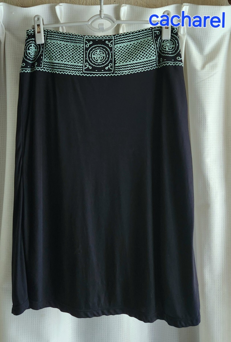 - 大変美品 キャシュレル インポート 黒のシルクジャージスカート