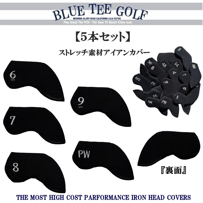 > ■【5本セット:6-PW】ブルーティーゴルフ ストレッチ素材 アイアン用ヘッドカバー販売 【BLUE TEE GOLF】