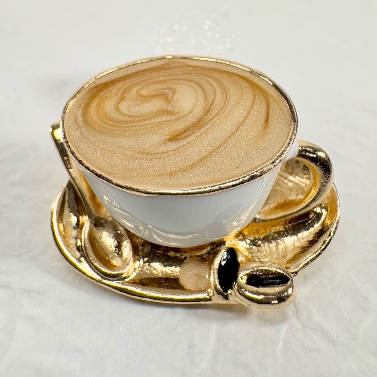 - 【ブローチ】カプチーノ ラテ コーヒー ティーカップ 白 ホワイト おしゃれ