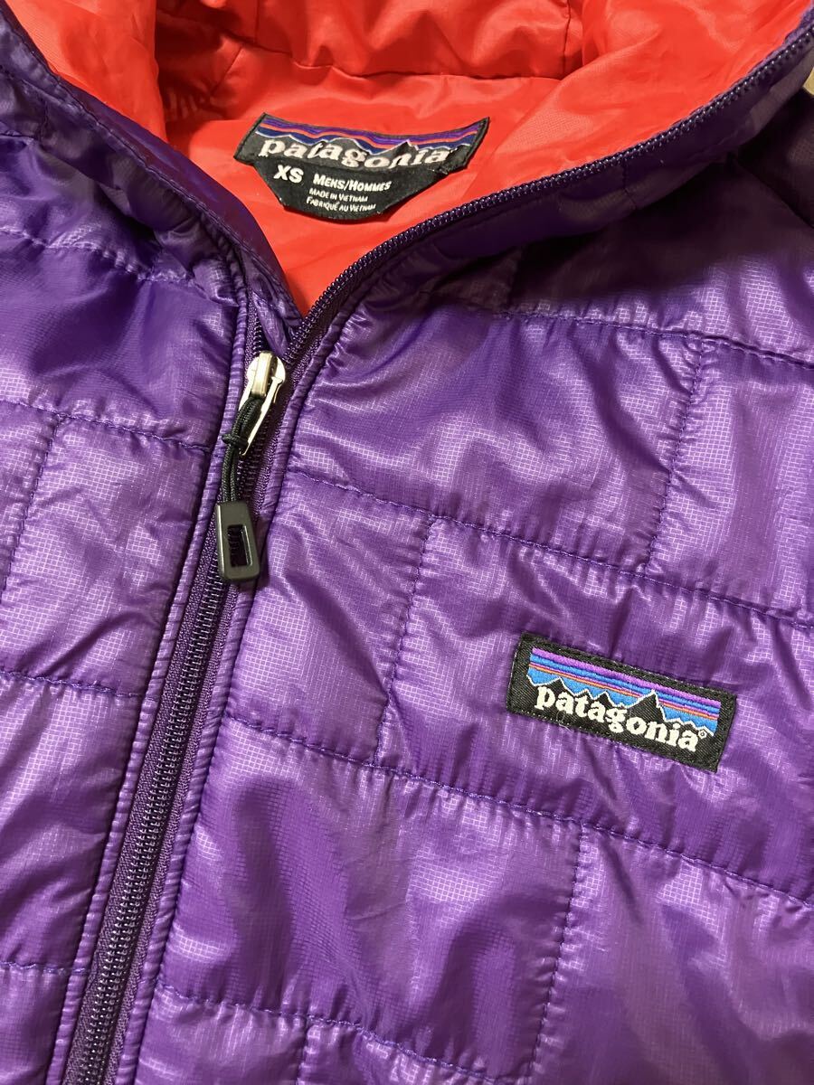 > 2010 patagonia パタゴニア XS ナノパフ フーディー 紫 赤 パープル レッド 中綿 ジャケット 登山 アウトドア